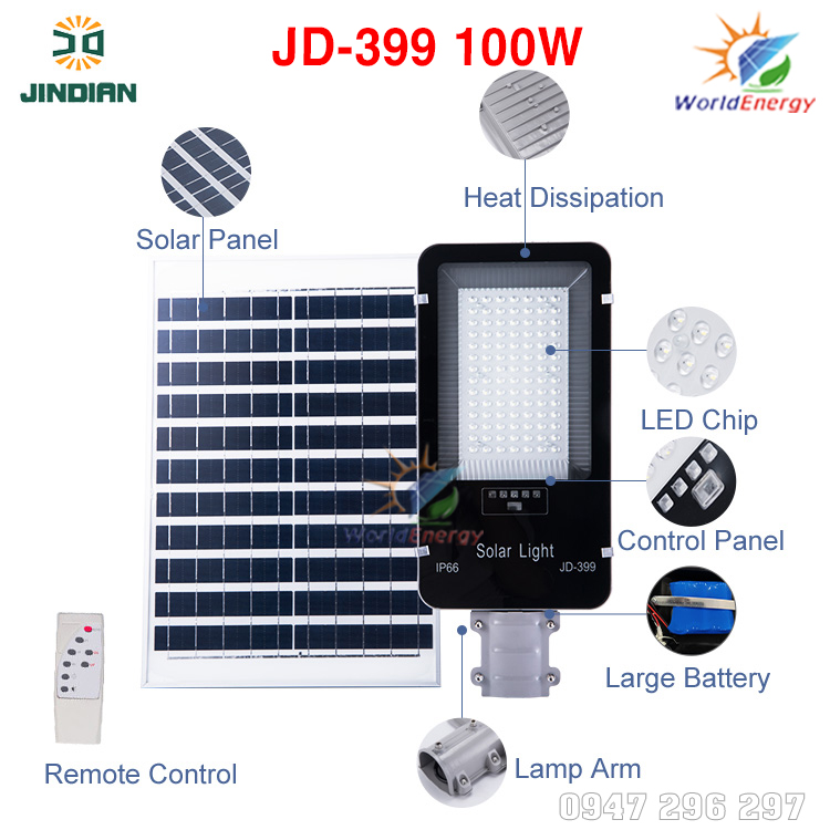 Quý khách hàng mua Đèn năng lượng mặt trời 100W Jindian xin liên hệ hotline 0909 296 297 hoặc đại lý gần nhất để được giá ưu đãi.