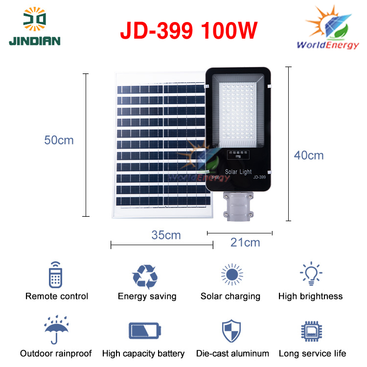 * Hình ảnh Đèn đường năng lượng mặt trời 100W Jindian (JD-399)