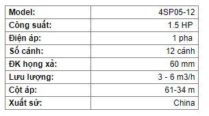 Máy bơm hỏa tiễn 4inch cánh inox VERATTI 4SP05-12 thường được sử dụng cho :