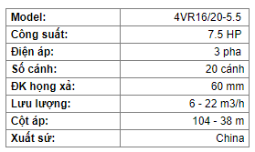 Máy bơm hỏa tiễn 4inch cánh nhựa VERATTI 4VR16/20-5.5 thuộc dòng máy bơm hỏa tiễn là loại :