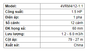 MÁY BƠM HỎA TIỄN 4 INCH - 220V VERATTI 4VRM6/11-1.1 1.5HP